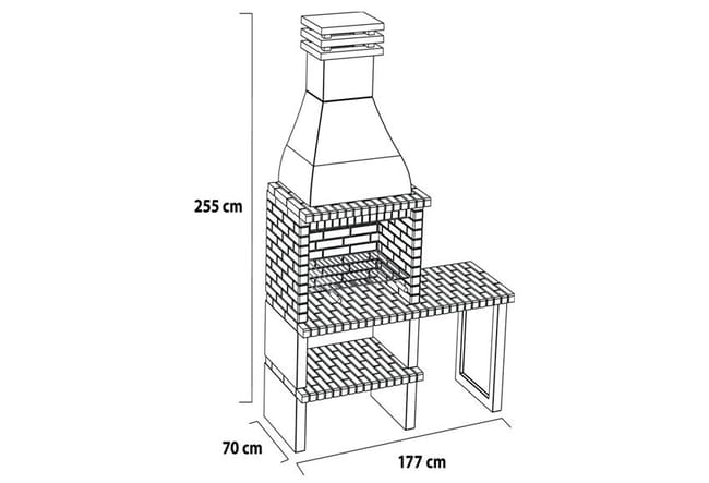 Paellero Ondara con campana válida para carbón vegetal y leña, recomendada para 13 comensales. Está fabricada en ladrillo de color naranja. Proporciona espacio y calidad suficiente para disfrutar de largas comidas y cenas al aire libre, especialmente en paellas. Instala esta barbacoa en tu jardín o terraza y organiza fiestas al aire libre confiando en la seguridad y calidad. La parrilla es regulable para que puedas ponerla como quieras. Tiene montaje modular por piezas con silicona. Cuenta con repisa inferior y una bancada de apoyo. Se recomienda cumplir la carga máxima de combustible indicada en el manual y no utilizar si no está del todo seca. En este caso, hacer un fuego lento y progresivo solo con carbón hasta secar por completo. Medidas totales: 178 x 255 x 70 cm (ancho x alto x fondo). Parrilla: 84,5 x 55 cm (ancho x largo).