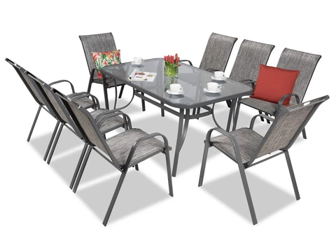 Detalles técnicos Código del producto: GAP016-8 Numero de asientos: 8 plazas Serie de muebles: Modena Peso (kg): 66 Dimensiones del paquete (cm): 8 x 86x57x86, 1 x 151x6x92 dimensiones de la mesa: 72x90x150 cm dimensiones de la silla: 95x69x55 cm Material: acero, textil Color: Gris El conjunto incluye: Dos sillas EAN: 5908224762429 Agujero de paraguas: 4cm Destino: Cena Instalación: parcialmente ensamblado Tipo de mesa: vaso Agujero de paraguas: Sí Apilado: Sí Sillas plegables: NO