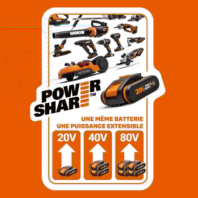 Robot cortacésped Worx S300 con batería de ion litio de 20V y 2Ah Powershare recomendado para trabajar sobre superficies de hasta 300 m² con obstáculos y pendientes de hasta el 35%. Incorpora tecnología de navegación inteligente AIA que corta hasta en las zonas más estrechas y de difícil acceso y permite el corte hasta el borde. Lleva 3 cuchillas de corte rotativas y 3 posiciones de altura de corte de 3 a 5 cm. Gracias a su programación y control a distancia por smartphone o tablet (wifi) podrás beneficiarte de la mejor tecnología de corte sin necesidad de estar en el jardín, accionando los distintos modos, controlando la ruta o bloqueando el robot a través de la app en caso de robo. Con el corte multizonas podrás programar hasta 4 zonas de corte. Incorpora sensores de seguridad que paran las cuchillas al levantar o inclinar el robot. El robot vuelve solo a la base de carga cuando la batería lo necesita o en caso de lluvia. Su base de carga lateral, discreta y elegante, le permite dejar una zona limpia a su alrededor. Batería de la plataforma Powershare intercambiable con herramientas eléctricas y de jardín de 20V de Worx. El robot es personalizable según tus necesidades a través de módulos opcionales: sistemas anti-obstáculos, GPS antirrobo,etc. Incluye base de carga, 130 piquetas para fijar el cable perimetral, 100 m de cable perimetral, 2 plantillas para instalación del cable perimetral, 9 cuchillas.