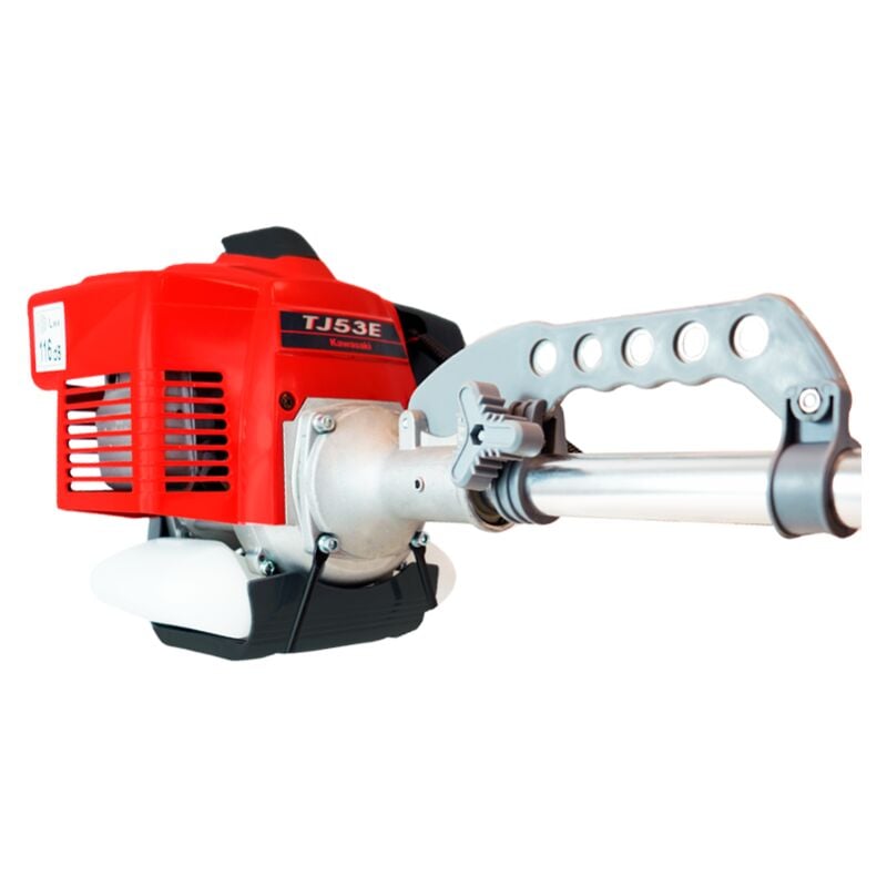 Desbrozadora con albero fisso en aluminio de 32 mm de diametro, che incorpora un motor KAWASAKI a 2 tempi de 53 cc con 2,7 HP de potencia, una macchina potente y affidabile. Il manubrio ergonomico ren