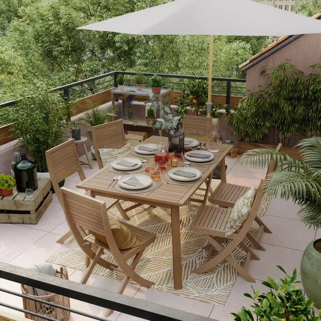 Transforma tu jardín o terraza en un espacio de vida acogedor con Mesa de jardín extensible de madera Solis marrón de 150/200x75x90 cm. De líneas modernas y materiales seleccionados para el exterior, este conjunto combina confort, estética y durabilidad.