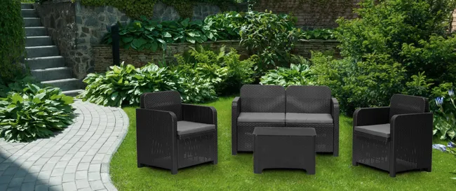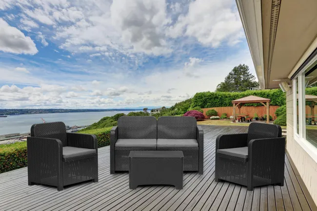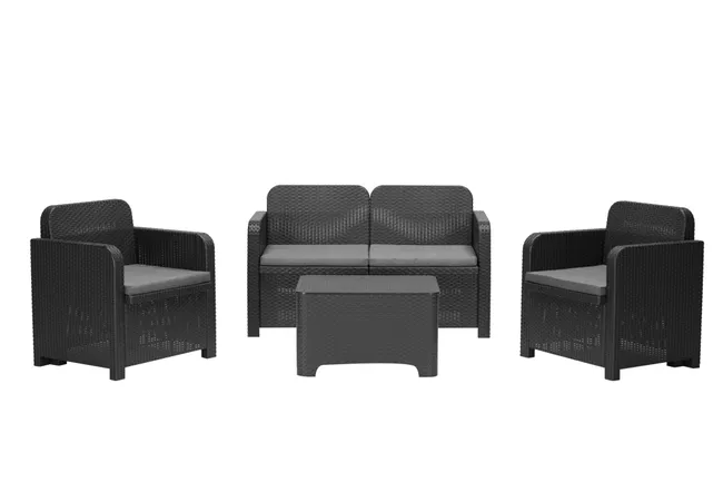 Mueble de jardín basso, plastica riciclata, SORRENTO Antracita, 4 persone