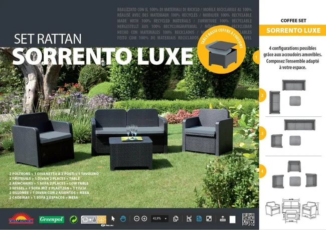 Transforma tu jardín o terraza en un espacio de vida acogedor con Mueble de jardín basso, plastica riciclata, SORRENTO Antracita, 4 persone. De líneas modernas y materiales seleccionados para el exter