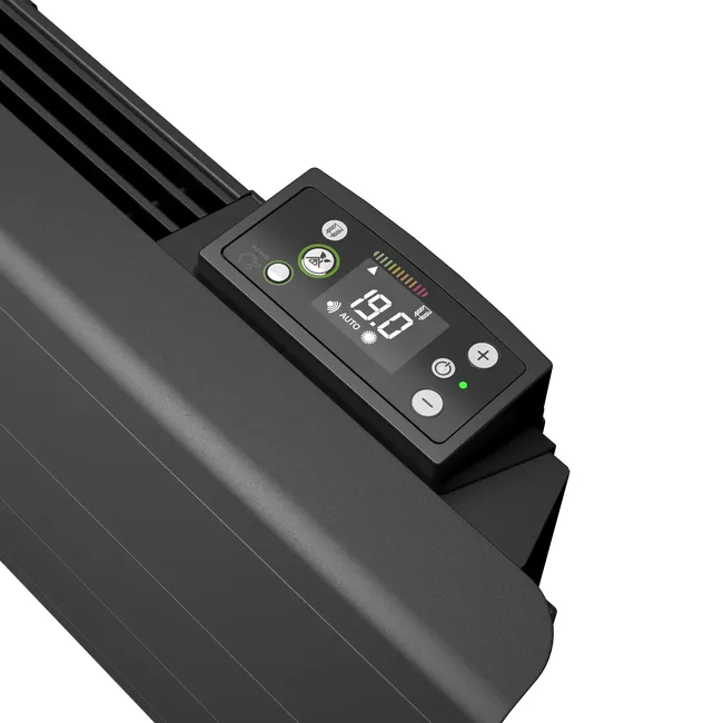 Con dimensiones de 117×61,2×12,3 cm. 2000 W de potencia. Su termostato integrado mantiene la temperatura deseada de forma constante, optimizando el consumo energético.