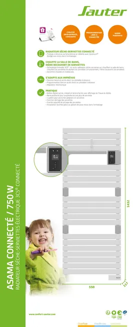 Scaldasalviette eléctrico SAUTER 750W, H 143,2 x L 55 cm Asama connesso blanco ofrece calefacción eficiente, silenciosa y de fácil instalación para cualquier estancia del hogar. Ideal para complementa