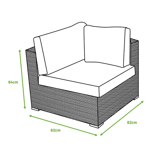 Con dimensiones de 82 x 64 x 82 cm. Los materiales utilizados están especialmente tratados para resistir la exposición al sol, la lluvia y los cambios de temperatura. Ideal para reuniones en familia o momentos de relax en solitario.